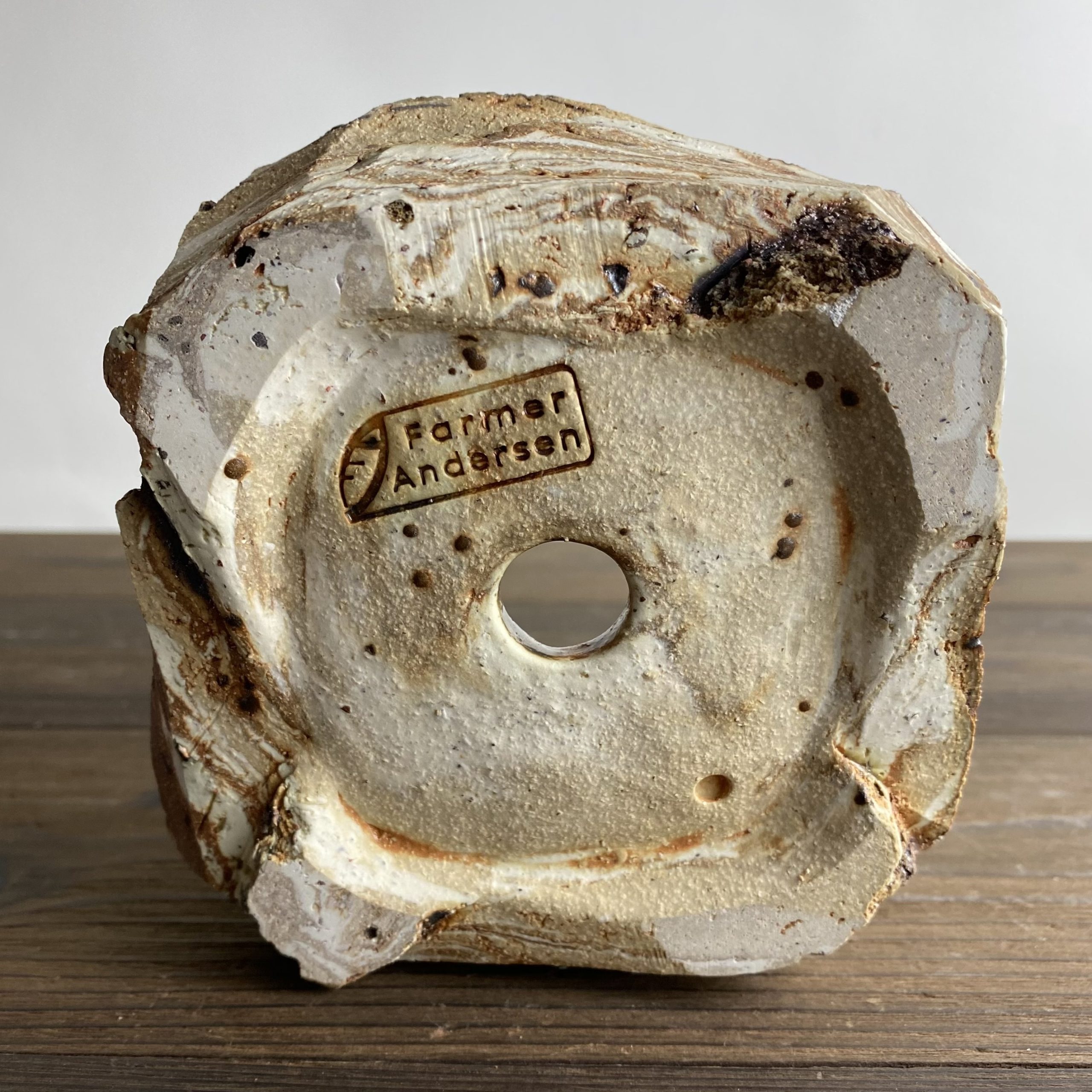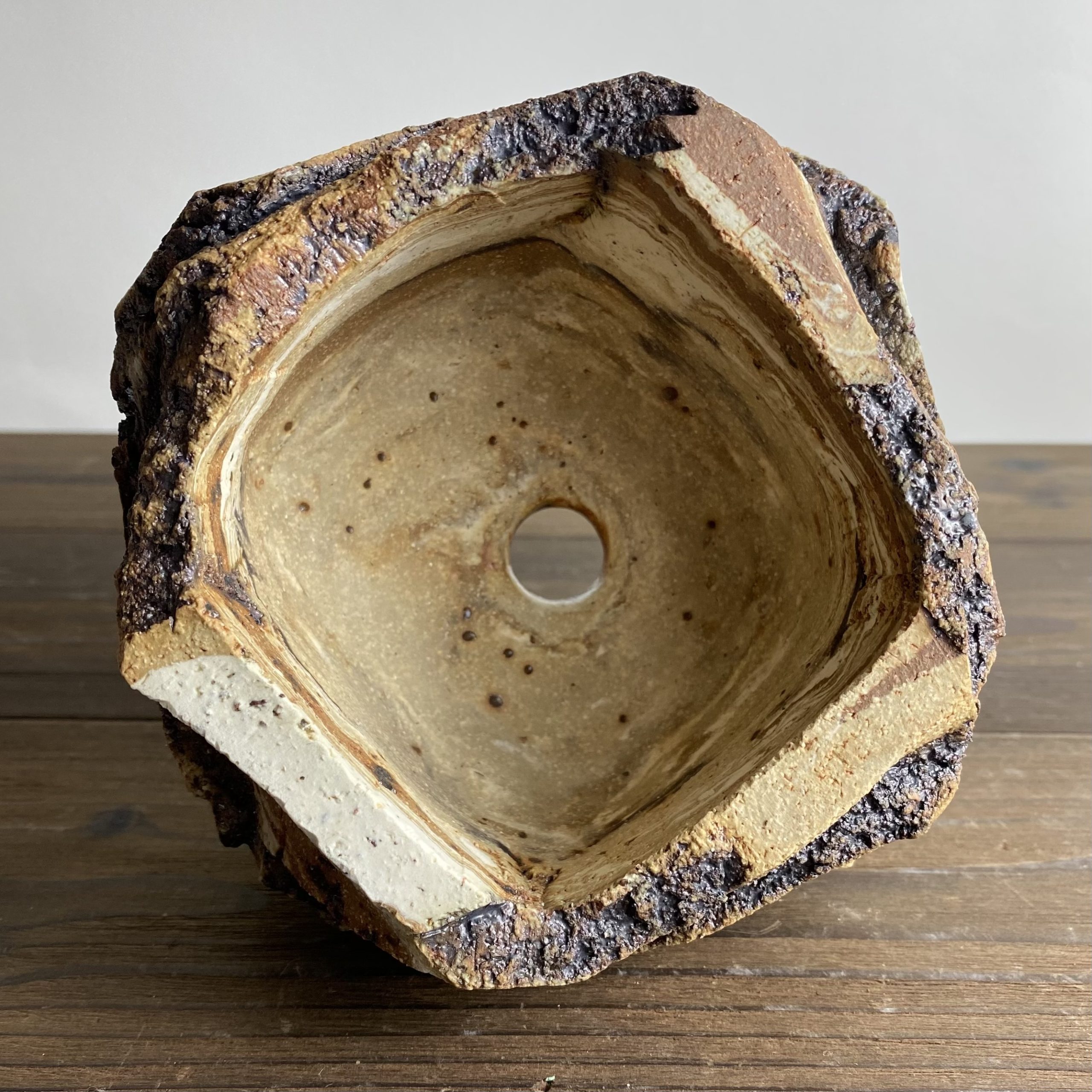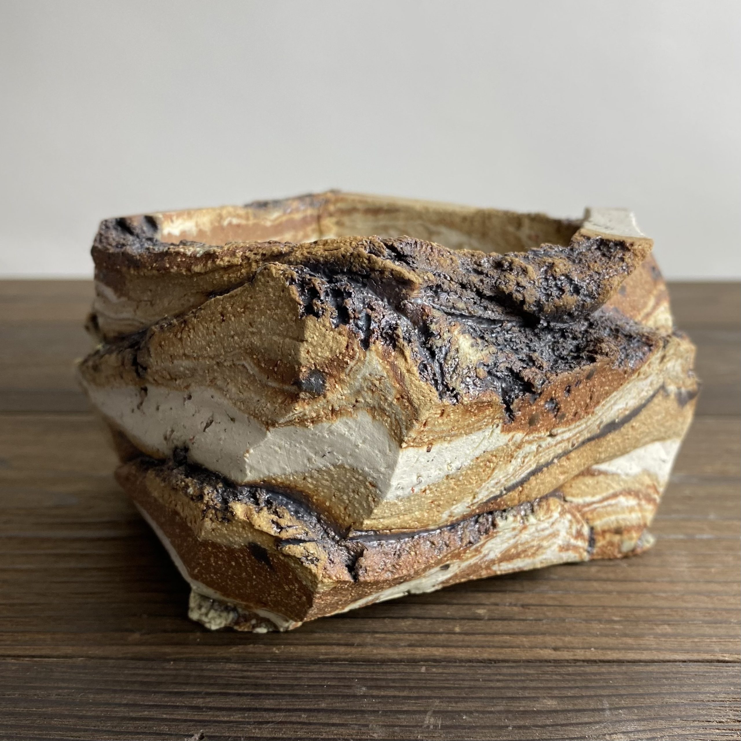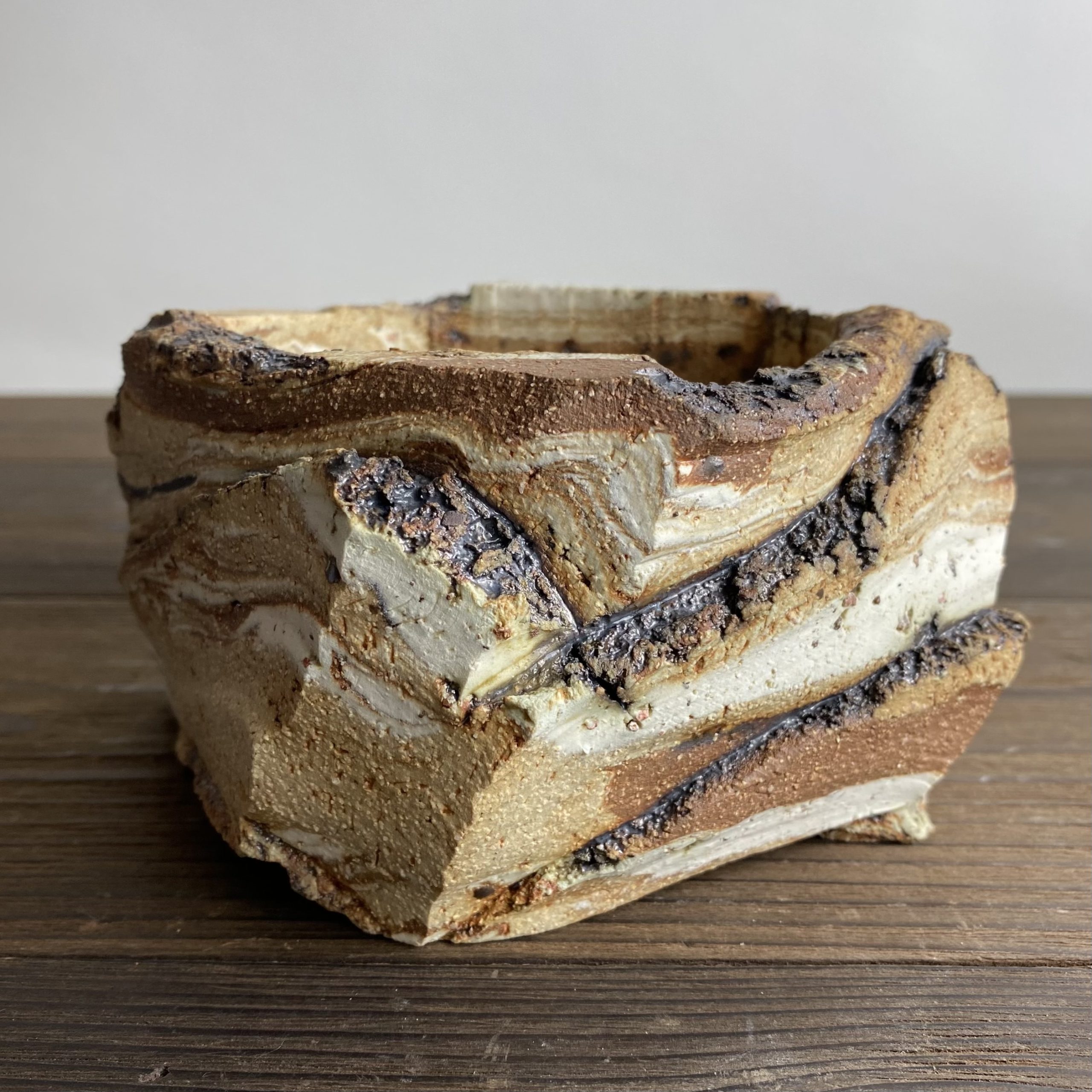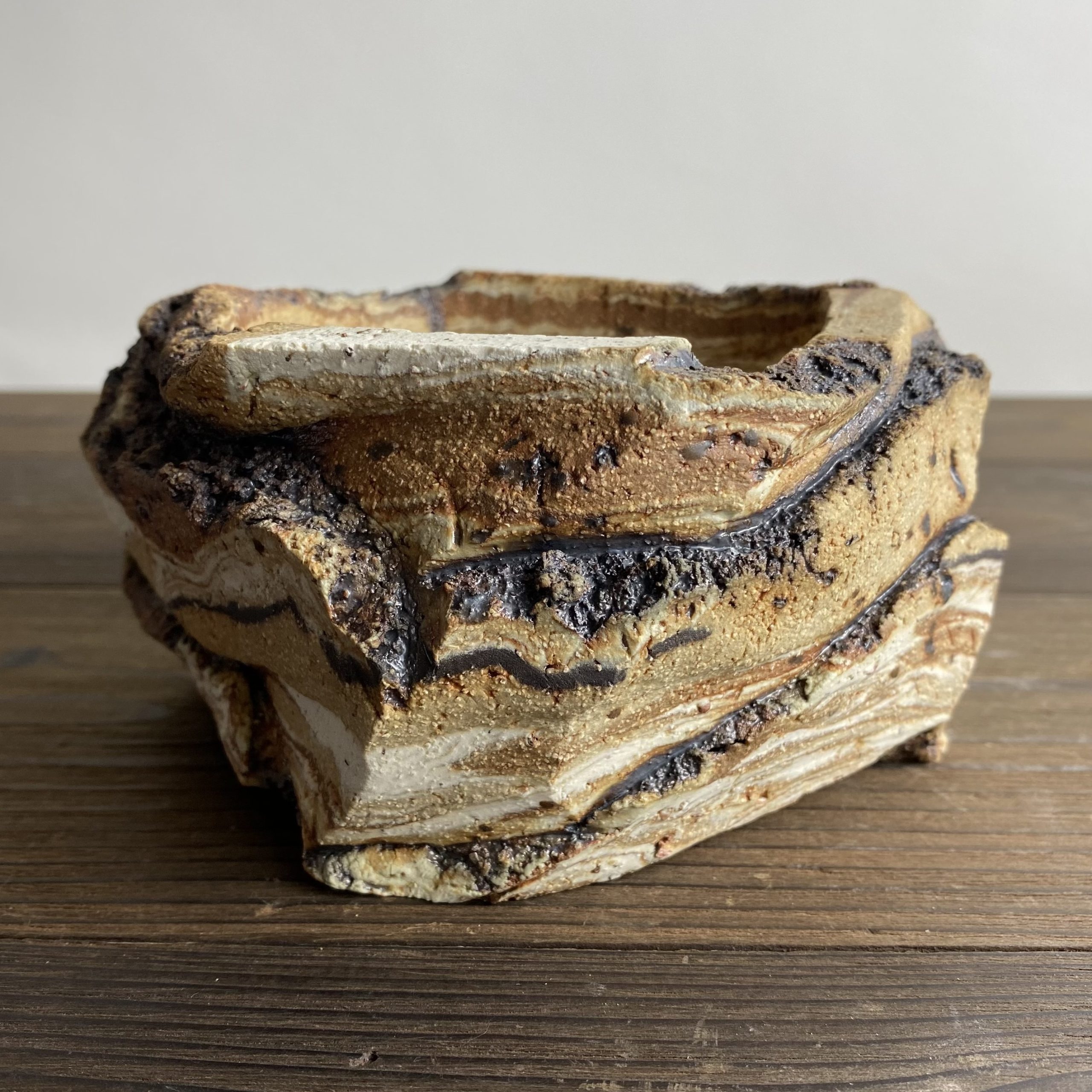 This handmade cactus planter is made of several color blends of stoneware clay and collected gravels. The pot is carved from a solid block of clay, then hollowed out, kurinuki stlye.